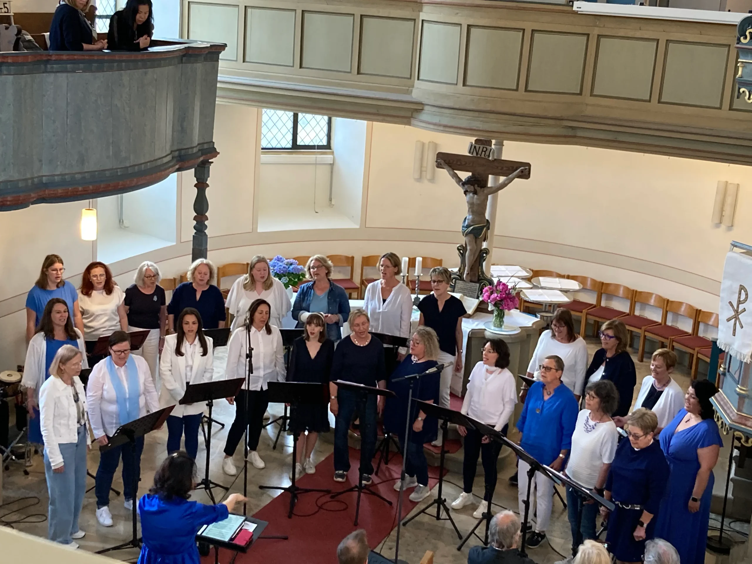 Wir laden dich ganz herzlich ein, einfach mal bei uns vorbeizuschauen! Wir sind ein bunter Frauenchor, der voller Freude Lieder singt, die uns allen Spaß machen – von mitreißendem Pop und Rock bis zu stimmungsvollen Gospels, von Klassikern bis zu Hits aus dem Radio.